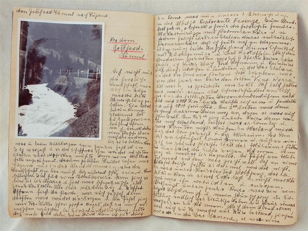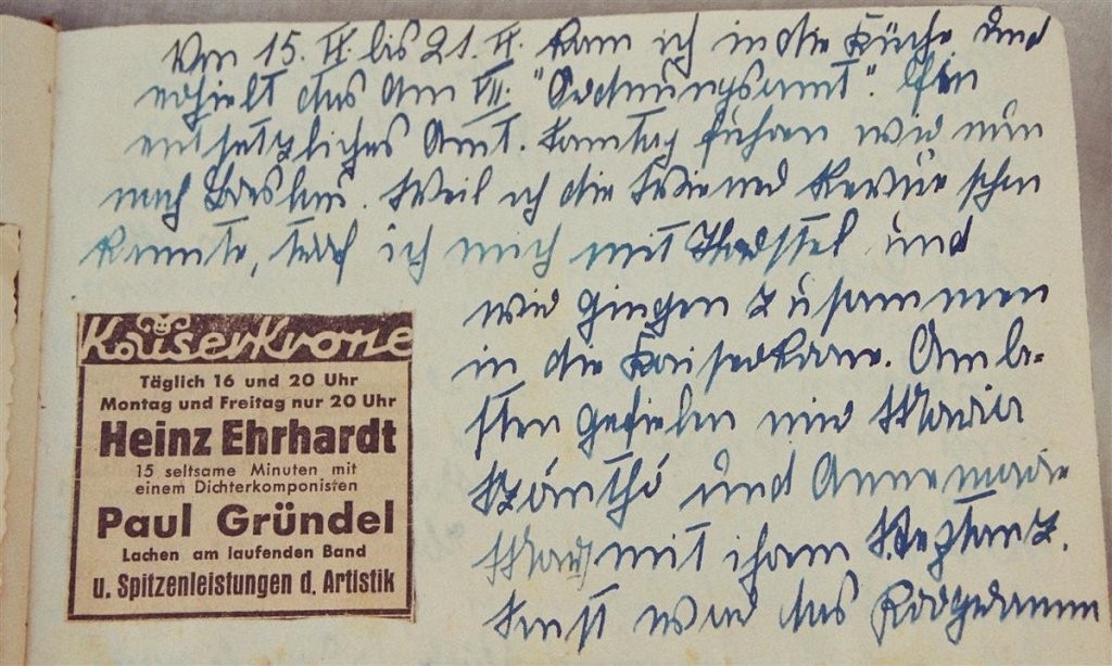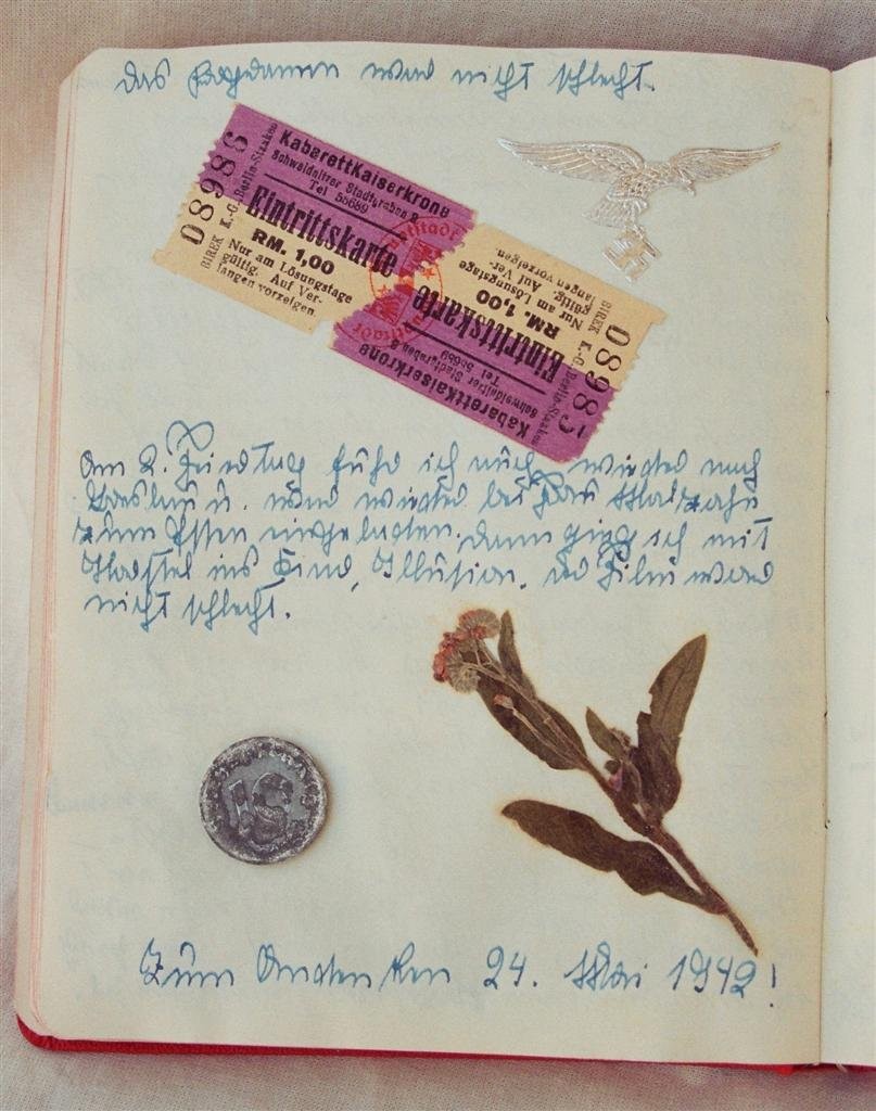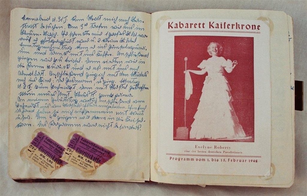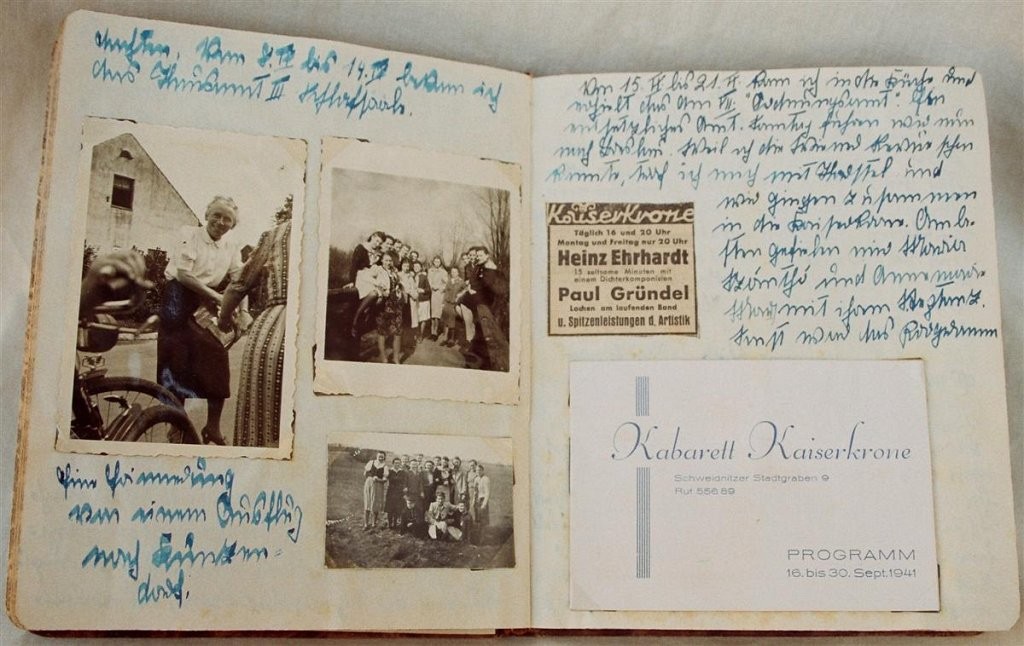 In 16 Tagebüchern schildert die 1925 geborene Maja v. H. ihr Leben. Freud und Leid, wie Theaterbesuche oder die Todesnachricht eines Freundes, wechseln sich während der Kriegsjahre ab. Nach dem Krieg finden sich viele Reiseberichte, ihre Hochzeit und die Geburt eines Kindes. Illustriert sind die Einträge mit vielen Fotos und Bildern (DTA 1533, 1-3).