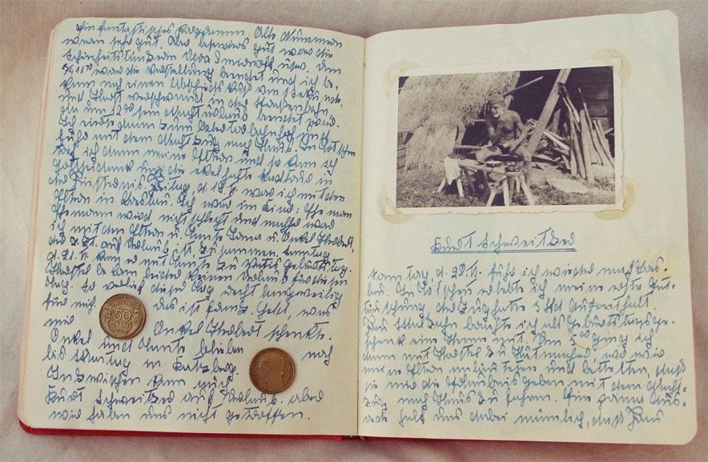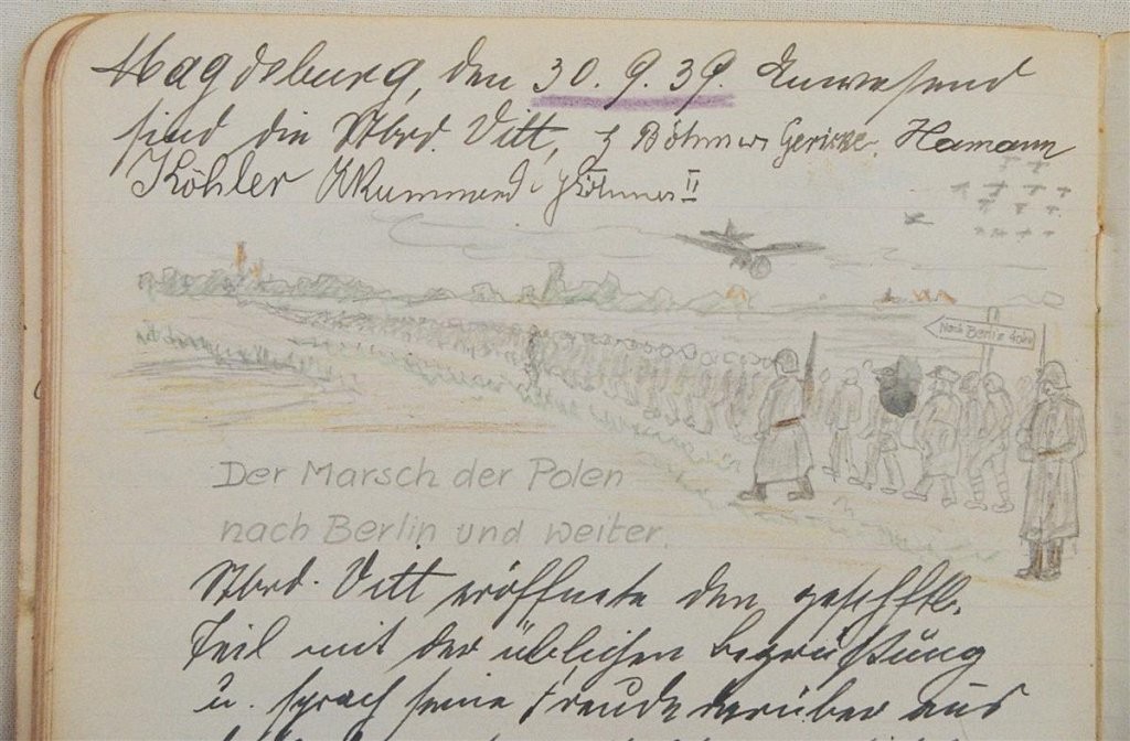 Der Kieler Abiturient Horst D. leistet von 1943 bis 1945 seinen Kriegsdienst als Kavallerist und Funker in der Wehrmacht. In seinem nachträglich zusammen gestellten „Kriegstagebuch“ beschreibt er seine militärische Ausbildung und seine Kriegseinsätze (DTA 1862 / II).