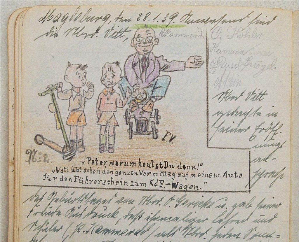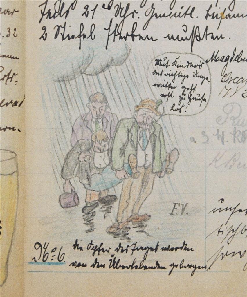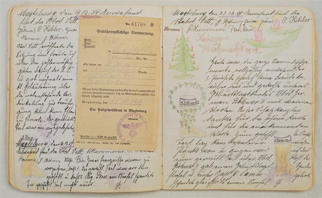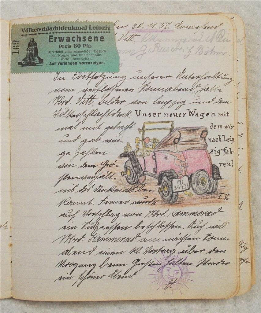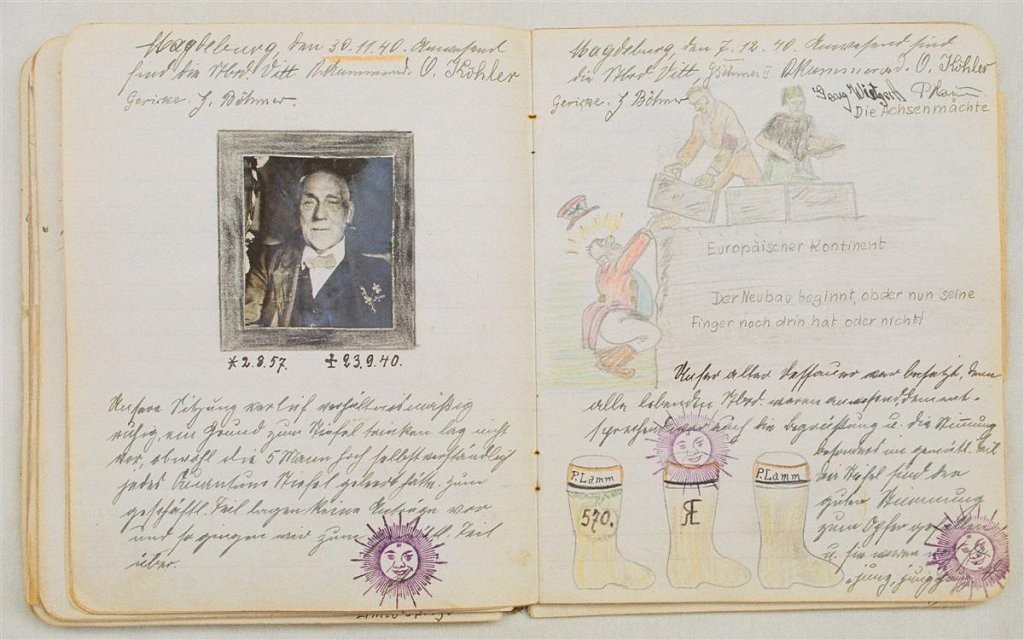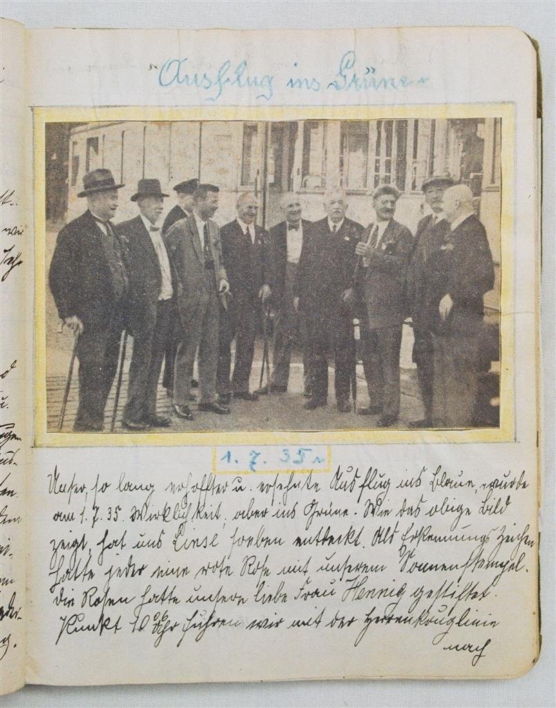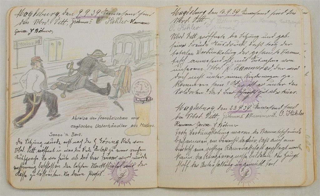 Am 11. Juli 1931 wird die Stammtischgemeinschaft „Ruhige Ecke“ in Magdeburg gegründet. Die wöchentlichen Sitzungen der 14 Mitglieder werden bis Dezember 1941 in zwei dicken Kladden protokolliert. Die beiden Protokollhefte sind mit vielfältigen Zeichnungen, Karikaturen und „Bierstiefel“ ausgestaltet (DTA 3086).